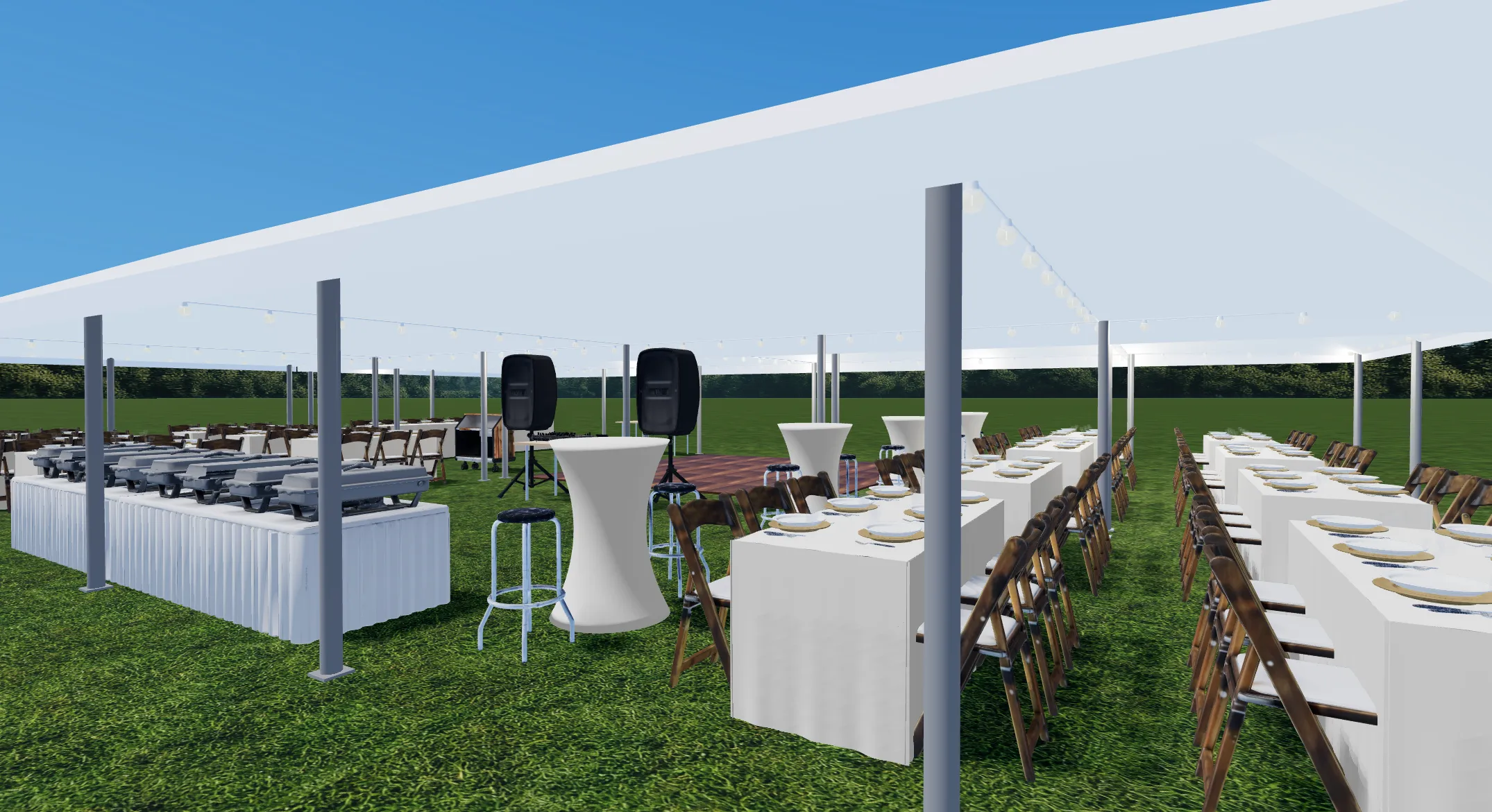 Picnics, company parties, award dinners — design banquet-style or round-table setups for any headcount.
